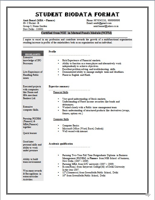 How to use resume keywords to land an interview. Home resume formats biodata format for job bio data sample for freshers download now. Essentially, bio data highlights a number of details about a person such as; Biodata form biodata is a valid and reliable means to predict future performance based on an applicant s past performance. Download 16 biodata formats & biodata form formats for job application, fresher students & experienced professional. A biodata summary is a brief introduction to your experience, expertise, and skills. Whatever may be the kind of job summary you're putting together. Nowadays a biodata format is primarily used as an alternative resume format or cv format if you prefer. Biodata is an abbreviation for the term biographical data. Just fill your basic details and your bio data is ready you can take print out and use it anywhere. Matrimonial biodata format a document presenting your matrimonial profile. Here you can make your bio data for marriage purpose in just 2 minutes. Job biodata format—this could range from a kind of resume, to a list of questions for you to answer.